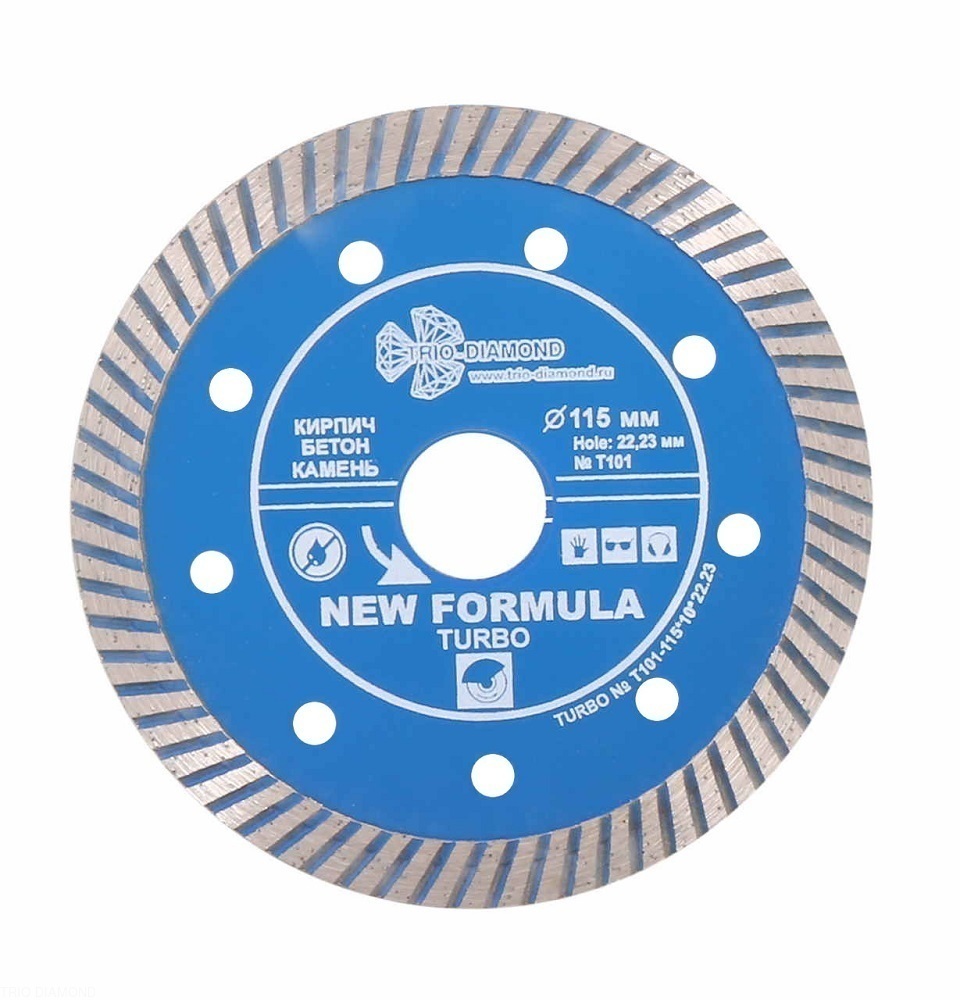Особенности: диски с рифленой кромкой, имеют более чистый и аккуратный по сравнению с сегментными дисками рез. За счет турбированной кромки увеличивается скорость реза, отверстия на теле диска способствуют лучшему охлаждению и продлевают срок службы. Подходят как для сухого, так и для мокрого реза.