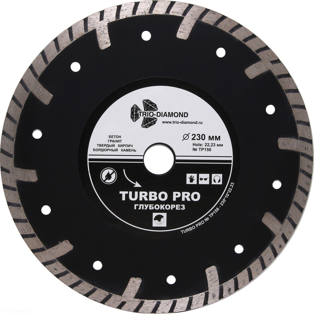Особенности: диски с рифленой кромкой, компенсационными отверстиями и дополнительными защитными секторами от бокового износа. Эти особенности конструкции позволяют добиться высокой производительности, увеличивают ресурс и стойкость, даже при работе с максимально твердыми и плотными материалами.