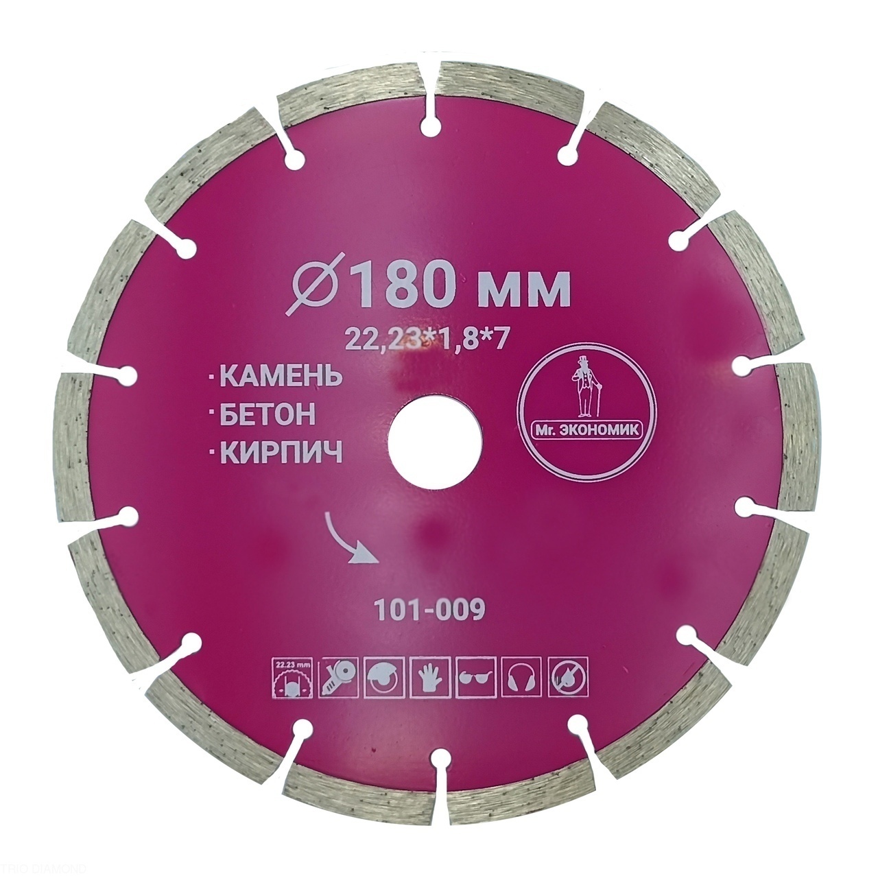Назначение: бетон, бордюрный камень, кирпич, тротуарная плитка. Особенности: алмазный диск для общестроительных работ