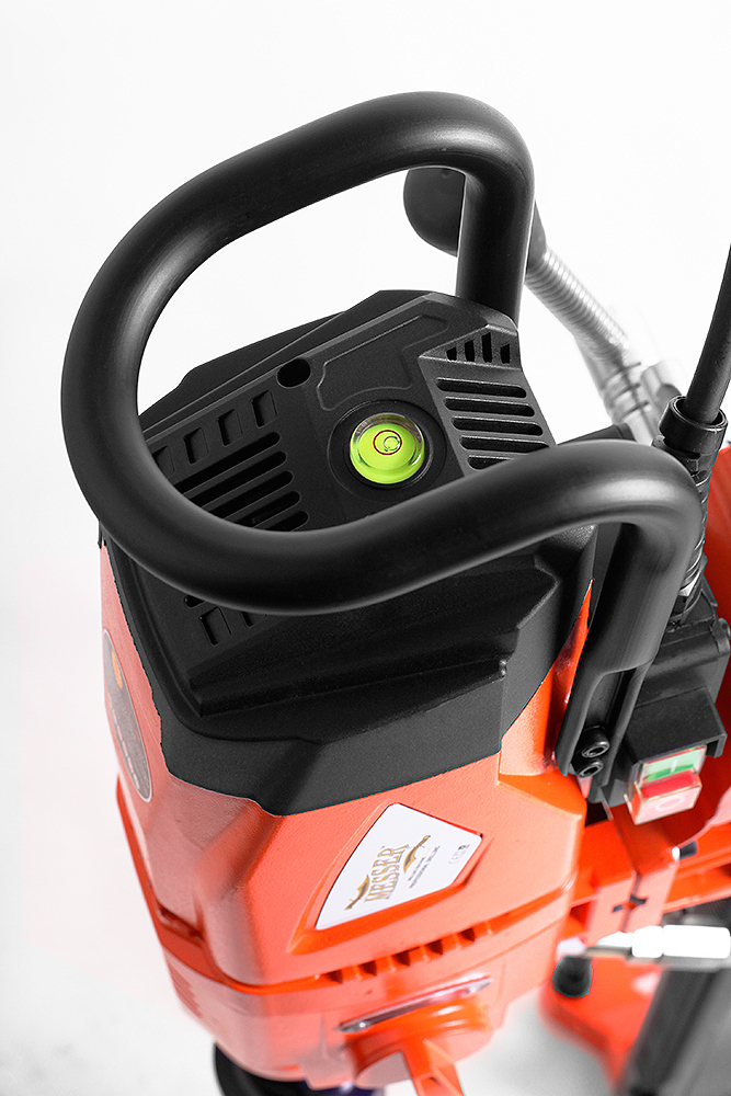Двухскоростной двигатель алмазного бурения MESSER DM-350. Способен эффективно работать с алмазными коронками диаметром до 350 мм. Традиционно имеет универсальный шпиндель под коронки с хвостовиками ½ и 1¼ дюйма, систему защиты от поражения электрическим током PRCD. Корпус двигателя изготовлен из металла.