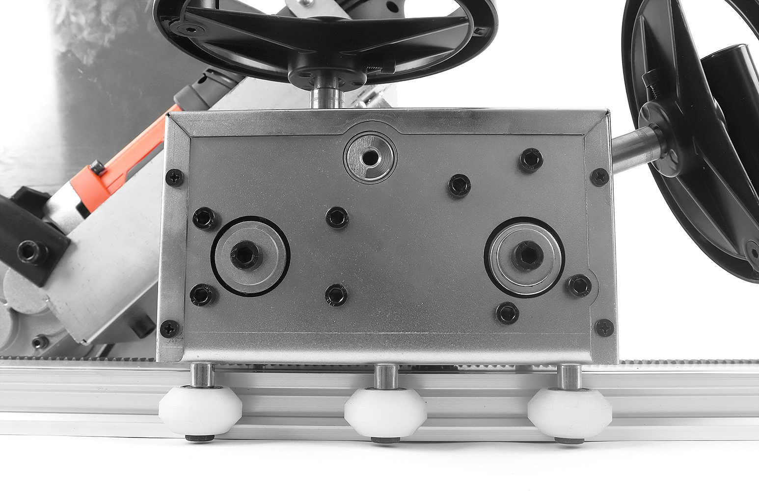 Две шины длиной 1,2 метра каждая, позволяют соединить их и получить направляющую в 2,4 метра. Ширина направляющей шины 90 мм., а дина монтажной пластины (для крепления шины к поверхности разрезаемого объекта) 225 мм. Каретка направляющей шины снабжена штурвалами, при вращении которых обеспечивается точная регулировка глубины резания и плавная подача каретки по направляющей шине.