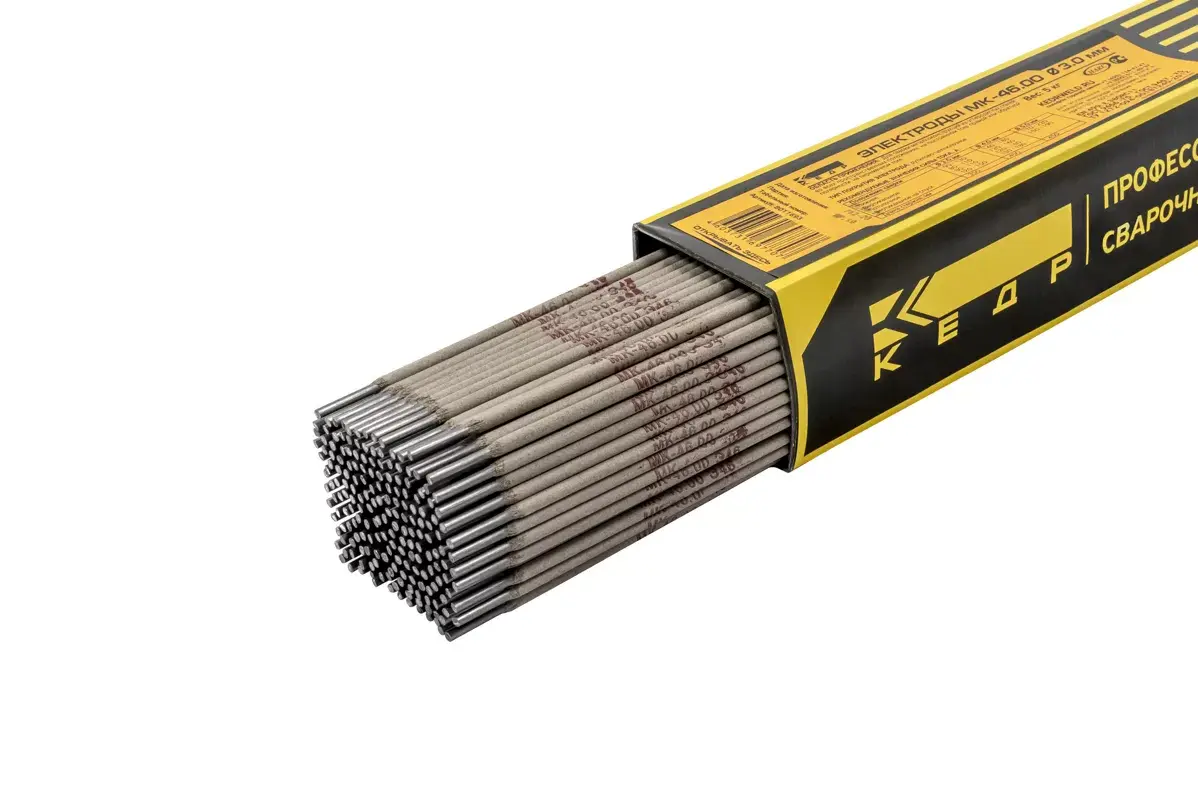 Электроды МК-46.00 Ø 3,0 мм КЕДР пачка 5кг (цена указана за 1 кг.) - предназначены для сварки ответственных конструкций из углеродистых сталей во всех пространственных положениях на постоянном токе прямой или обратной полярности, на переменном токе.