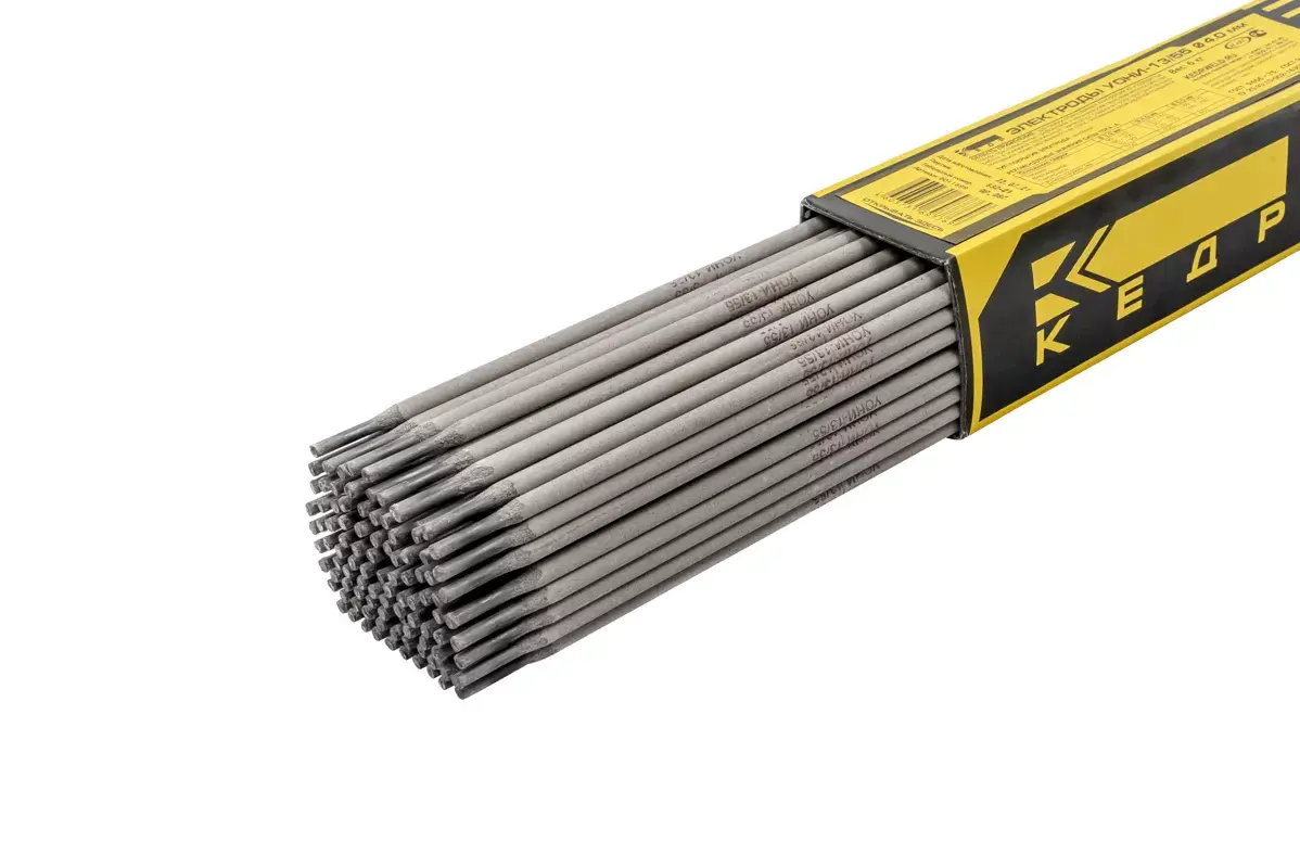 Электроды УОНИ 13/55 Ø 4,0 мм (КЕДР) пачка 6кг (цена указана за 1 кг.) - для сварки ответственных конструкций из углеродистых сталей, когда к металлу сварного шва предъявляются повышенные требования по пластичности и ударной вязкости. Сварка во всех пространственных положениях, кроме вертикального сверху вниз, постоянным током обратной полярности.