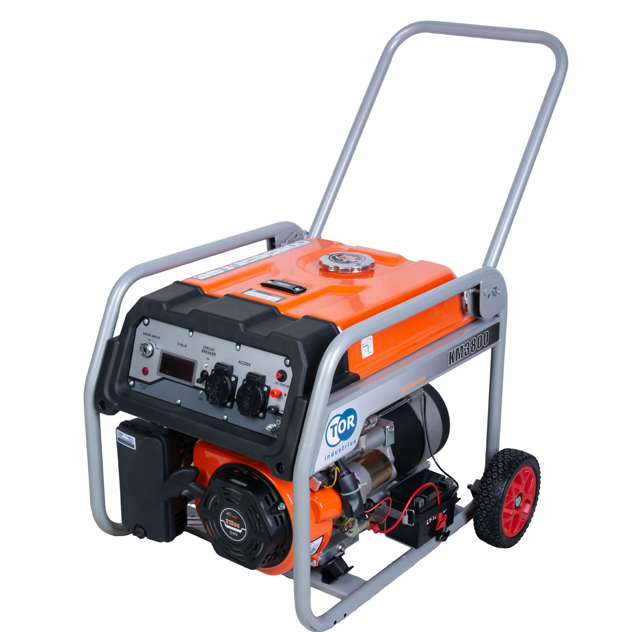 Генератор бензиновый TOR KM3800H 2,5кВт 220В 16л с электростартером и колесами. Мощная модель, которая подойдет не только для бытового, но и профессионального использования, например, в строительстве и производстве. Вместительный бак на 16 литров бензина и время непрерывной работы 10ч обеспечат потребителя стабильным током напряжением 220в на продолжительное время. Кнопка запуска с электростартером облегчает процесс запуска генератора, для максимально комфортного использования. Наличие колес в комплекте позволяет транспортировать генератор весом 53кг без особых усилий.