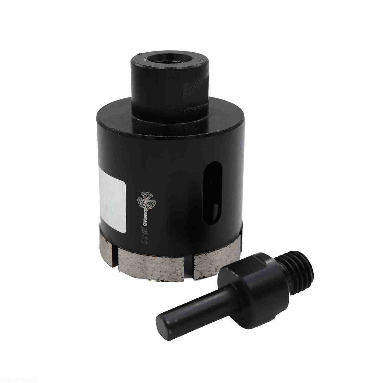Особенности: коронка оснащена съемным цилиндрическим хвостовиком с резьбовым соединением М14, что позволяет высверливать отверстия с помощью дрелей и УШМ. Для работ с водяным охлаждением в безударном режиме.