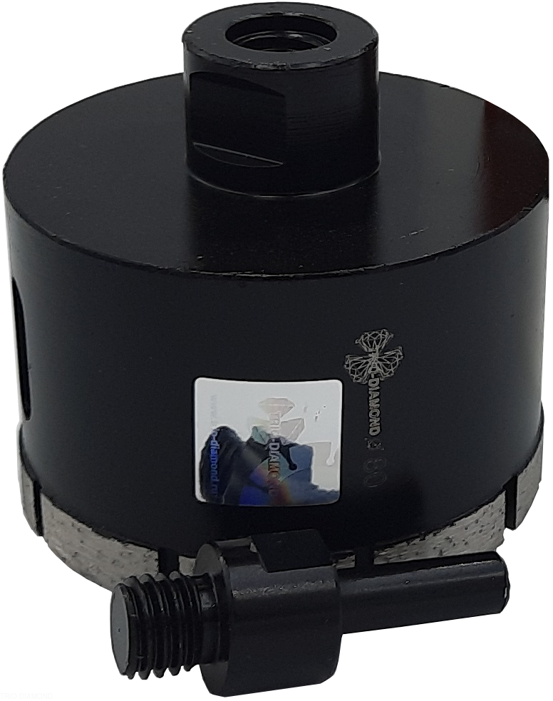 Особенности: коронка оснащена съемным цилиндрическим хвостовиком с резьбовым соединением М14, что позволяет высверливать отверстия с помощью дрелей и УШМ. Для работ с водяным охлаждением в безударном режиме.
