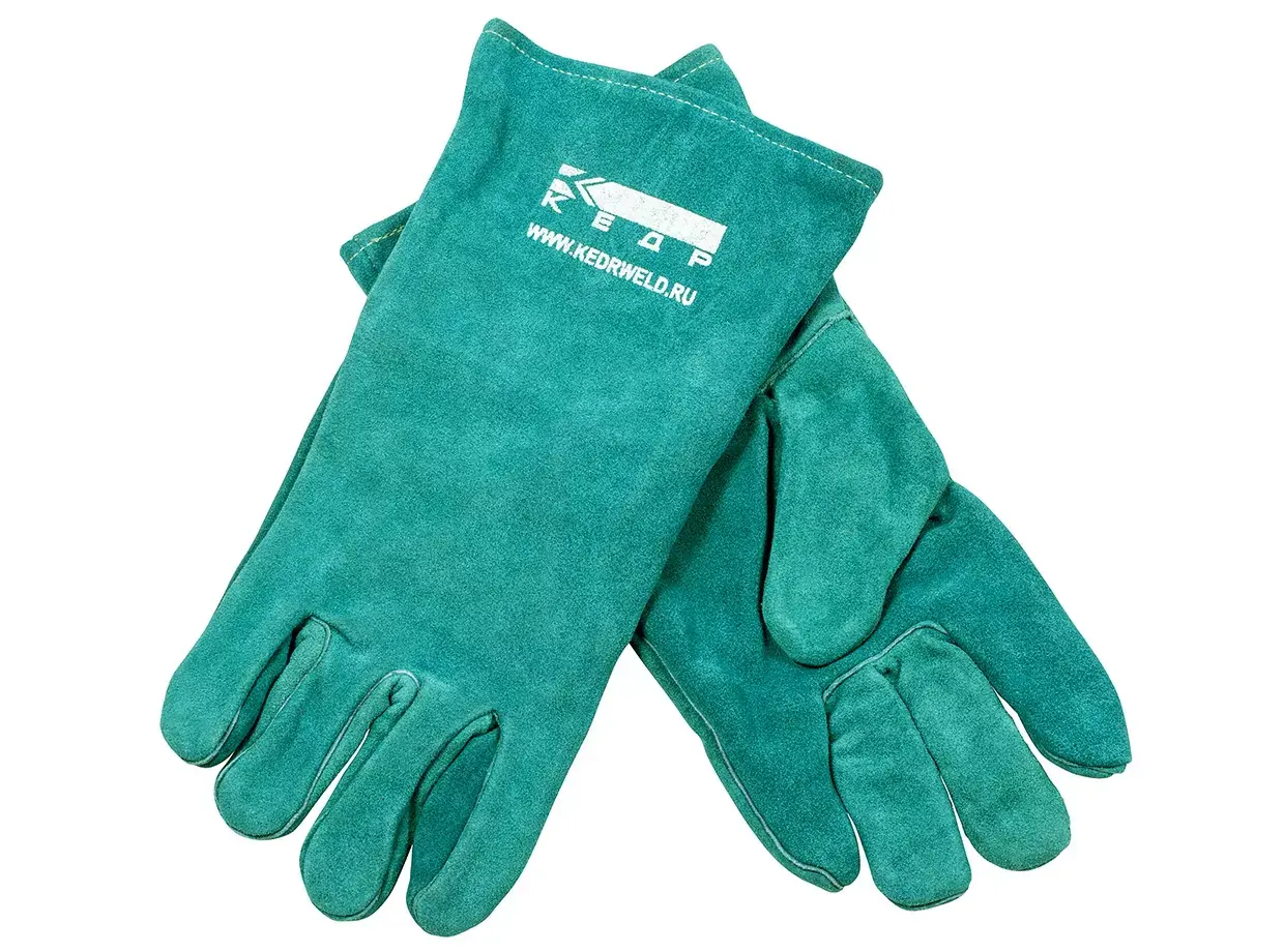 Краги спилковые КЕДР КС-15 ЛЮКС, зеленые изготовлены из цельной коровьей шкурки толщиной 1,3 мм с ворсовой изнанкой и бесшовным указательным пальцем. Надежно защищают руку сварщика от брызг и ожогов, а также при работе со шлифмашинкой и острыми предметами. Обеспечивают максимальный комфорт. Обладают усиленной жаростойкостью.