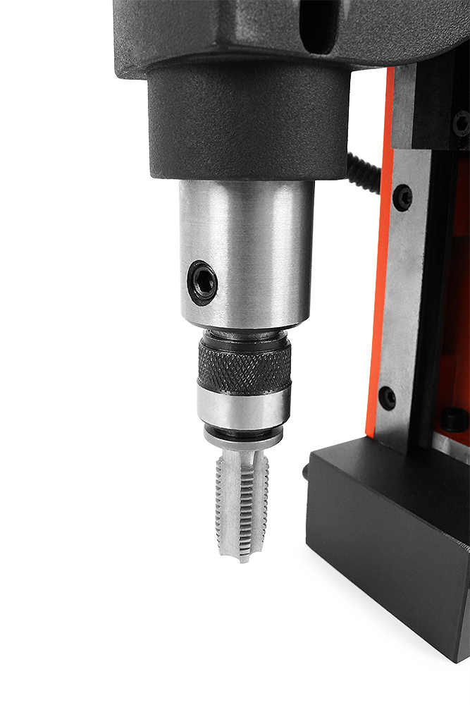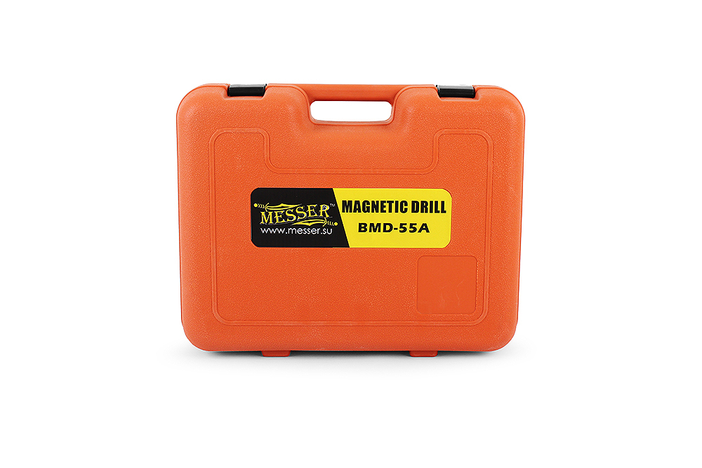 Магнитный сверлильно-резьбонарезной станок MESSER BMD-55A поставляется в удобном для хранения и транспортировки пластиковом кейсе, в комплекте с бачком для СОЖ, тремя съемными рукоятками подачи сверла, страховочным тросом, 3-х кулачковым патроном с ключом и адаптером, защитным кожухом и двумя шестигранными ключами.