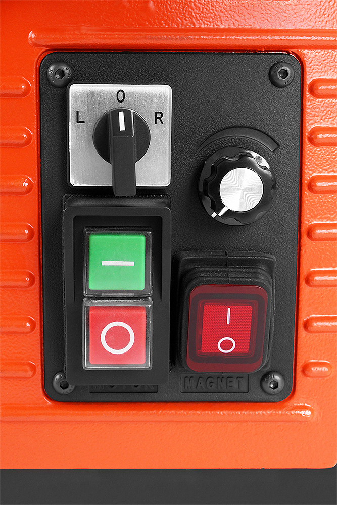 Данный станок оснащен двухскоростным редуктором и имеет две механические скорости, в каждой из которых, используя плавную регулировку, можно точно выставить оптимальные обороты для работы, как при сверлении, так и при нарезании резьбы.