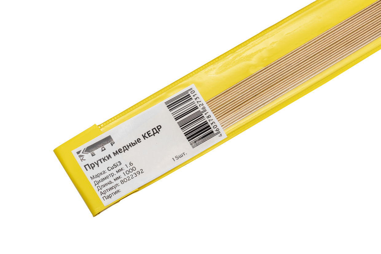 Прутки медные КЕДР CuSi3 Ø 1,6 мм (1000 мм, пачка 15 шт.) (цена указана за 1 упаковку.) используются при TIG-сварке и имеют широкую область применения.