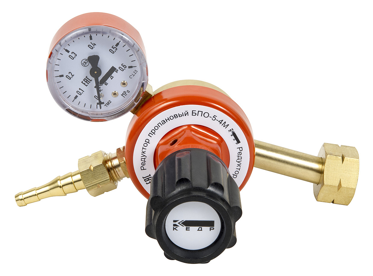 Редуктор пропановый КЕДР БПО-5-4М с поверкой предназначен для понижения давления газа, поступающего из баллона, и автоматического поддержания заданного рабочего давления постоянным при газопламенной обработке.