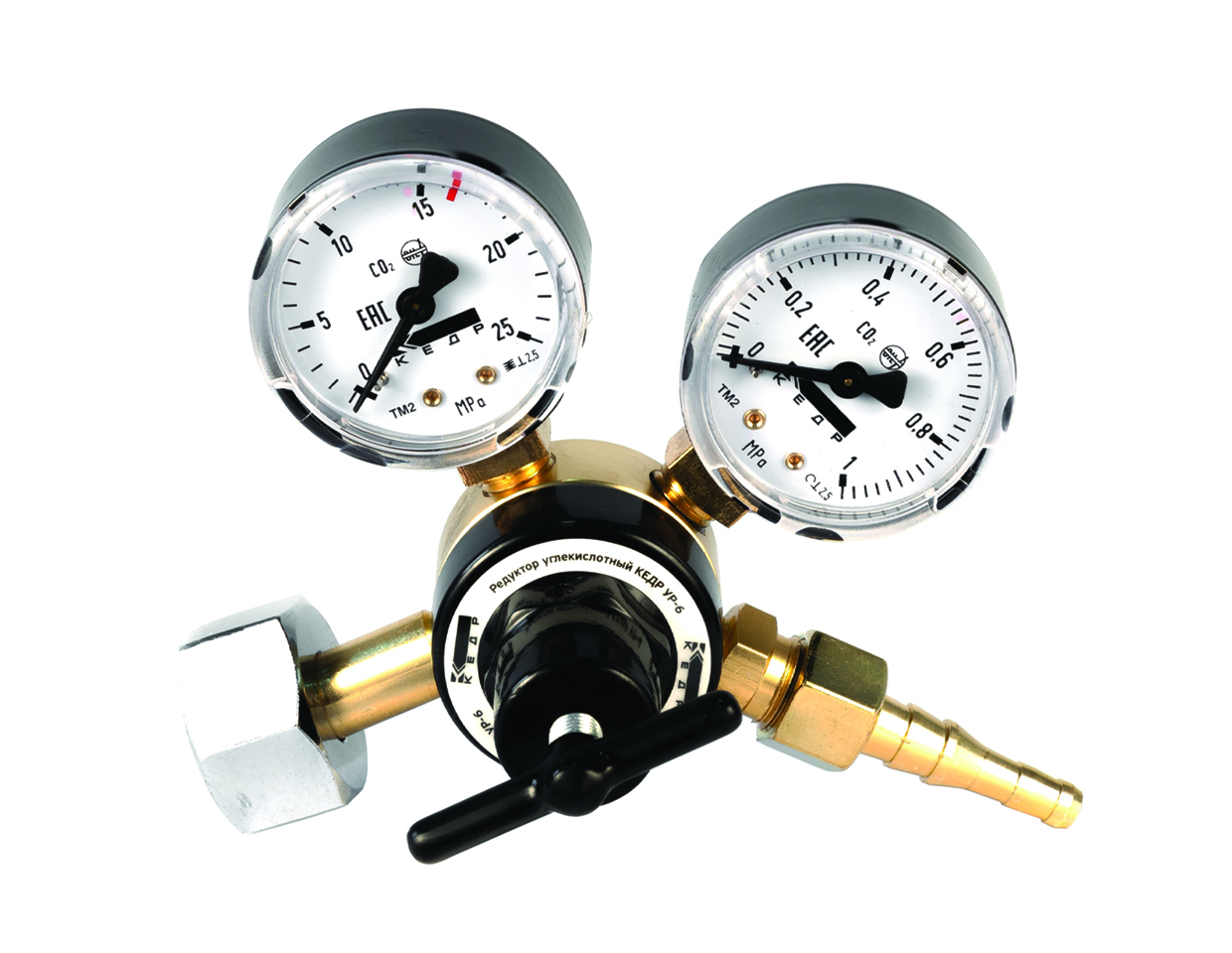 Редуктор углекислотный КЕДР УР-6 предназначен для понижения давления газа, поступающего из баллона, и автоматического поддержания заданного рабочего давления постоянным.