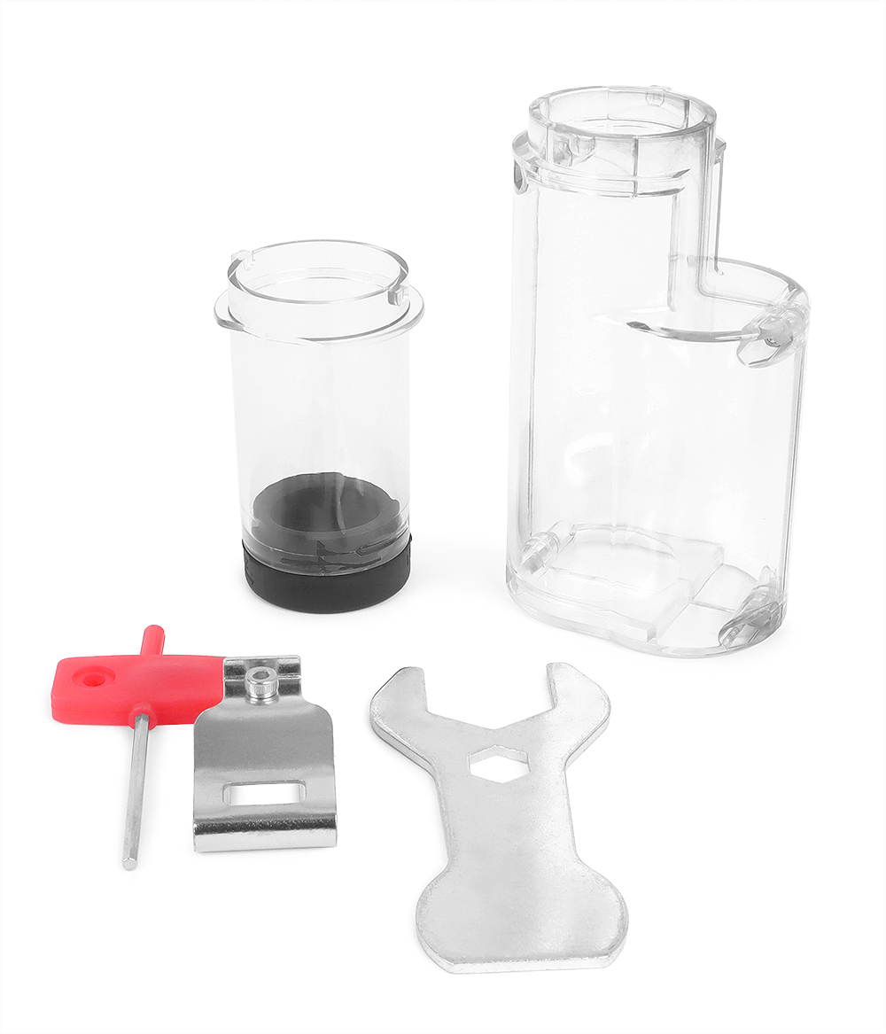 Насадки для установки различных диаметров заклепок, поставляемые в комплекте с инструментом, хранятся в удобном пластиковом контейнере. Ключ для смены насадок также идет в комплекте.