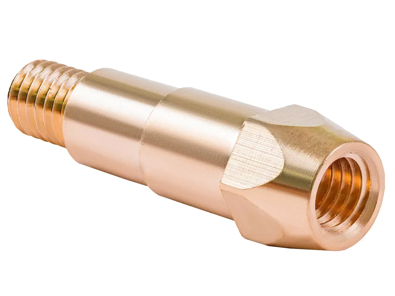Вставка под наконечник M8/43 мм (Mig-40) - предназначена для монтажа контактного наконечника в горелку. Вставка отвечает за равномерное распределение защитного газа внутри сопла и токоподвод к наконечнику. Все вставки, как правило, выполнены из латуни, имеют симметрично расположенные отверстия по всей окружности. Вставки под наконечник отличаются в зависимости от модели горелки, имеют разные размеры и внешний вид.
